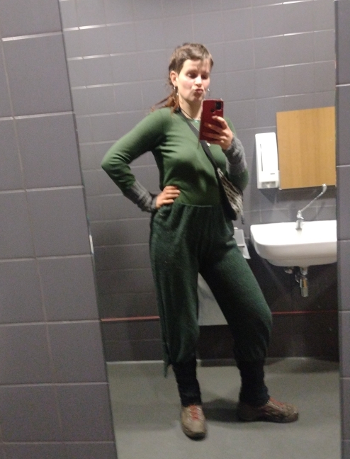 In de stad voel ik me ook de hele tijd vies. Ik zweet van de warme binnentemperaturen die niet lekker zijn in combinatie met al mijn laagjes kleren. Dan trek ik m’n truien uit en ziet iedereen weer dat mijn borsten los rondbungelen in mijn thermoshirt, daar ben ik me dan ook weer veel te bewust van. Ik laat moddersporen achter die uit het profiel van mijn wandelschoenen vallen en kon laatst precies mijn route van en naar het toilet in de bieb zien. Awkward.
