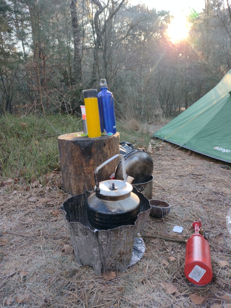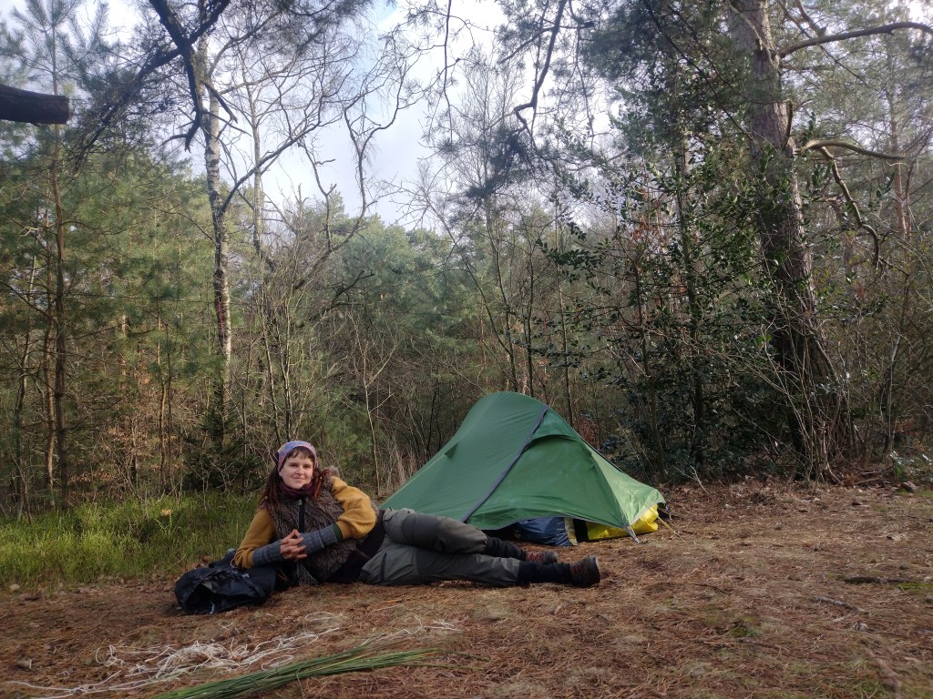 Het bos is donker, maar de volle maan komt zo op. Het is koud maar ik heb het warm. Ik voel me stoer en sterk, zo in de kou in mijn minitentje. Dit is het leven waar ik voor kies, de stad in gaan hoort er ook bij, maar is niet mijn plek. Ik ben gekleed op het bos, mijn routines zijn afgestemd op de kou. In de stad is dat soms moeilijk voor te stellen en voelt het contrast soms zo groot, dat ik geen zin heb in mijn plekje.