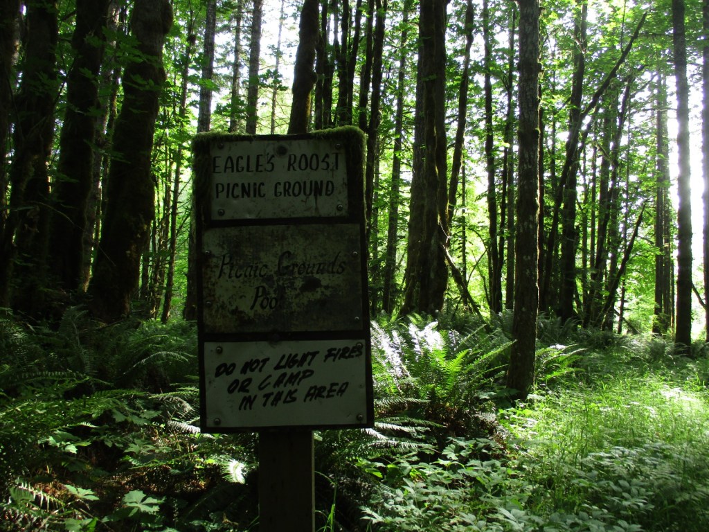 Het was al kilometers lang een dorre bende, en beekjes die op de kaart aangegeven stonden waren allemaal opgedroogd. Ik zette in op nog een laatste zes kilometer doorbeuken tot het volgende riviertje op de kaart en dat was de hemel. Een groot donker bos met een frisse, snelstromende rivier met een mooi bruggetje. Het was al zeven uur toen ik aankwam en ik was erg moe, maar er moet nog zoveel gebeuren voordat je naar bed kan. Me wassen in de rivier, avondeten maken en eten, tentplek zoeken en tent opzetten, douglas theetje drinken, en een belangrijke hier: je eten in de boom hangen tegen de beren. Dat is nogal een vak apart (moet echt aan een tak niet te dicht bij de stam en hoog genoeg, beren zijn goeie klimmers), maar warempel ging het die eerste avond goed.