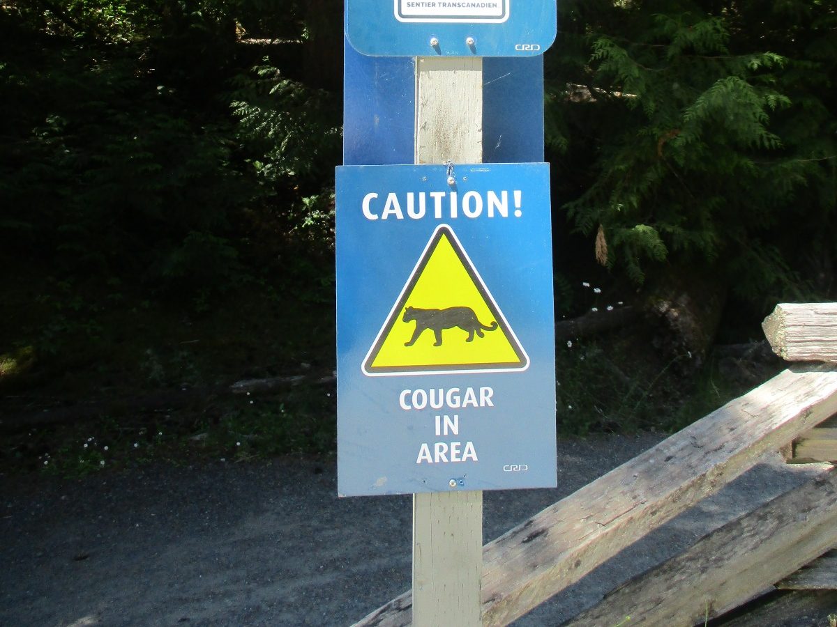 In mijn blote borsten lag ik te zonnebaden toen een vrouw op het pad naar me riep. “A cougar in the river, less than a kilometer from here! I got scared and turned around!”. Shit. De adrenaline gierde door me heen. De cougar, ook wel ‘mountain lion’ genoemd en basically gewoon een puma, is een sterk en groot wild dier. Een reuzenkat. Ze vallen nauwelijks mensen aan, maar er zijn hele specifieke richtlijnen voor wat je moet doen als je ze tegenkomt. Niét wegrennen of -lopen. Wachten tot de cougar weggaat, je groot maken en roepen.