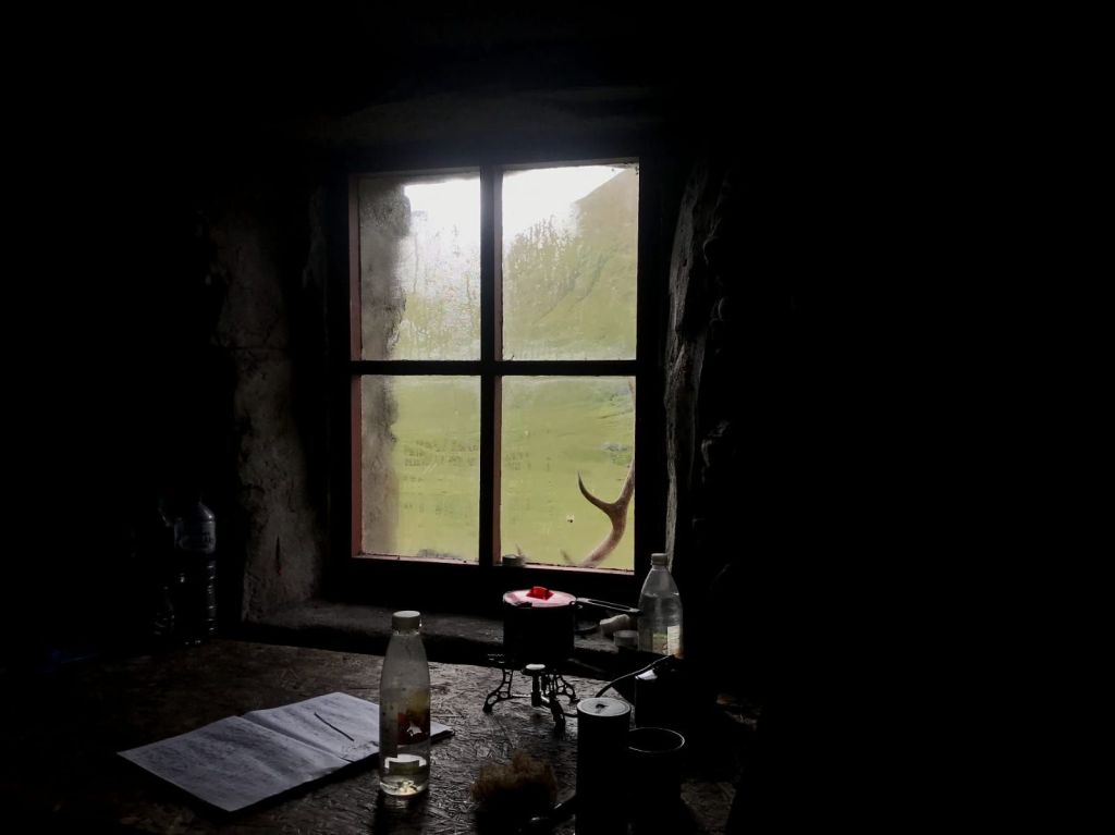 Met brandende blaren onder beide voeten sjouw ik mezelf het stenige paadje op. Mijn schoenen zijn zeiknat, ik word belaagd door midges (steekvliegjes) en zelfs mijn rug vertoont inmiddels pijntjes. Maar in de verte zie ik in de groene vallei die wordt omringd door torenhoge, in mist gehulde bergen, de hut. Een klein stenen huisje met een oranje dak, midden in het niets. Achter me hoor ik het getik van wandelstokken en komt de Spaanse Wen naast me lopen. Als we een half uur later bij het huisje zijn duwen we de deur open en worden we verwelkomd door een luide mannenstem: “you made it!”. Even turen onze ogen in niets dan duisternis, maar als ze gewend zijn zitten daar de Yorkse Jess en John aan hun theetje. We zijn er, veilig en droog, in de bothy.
